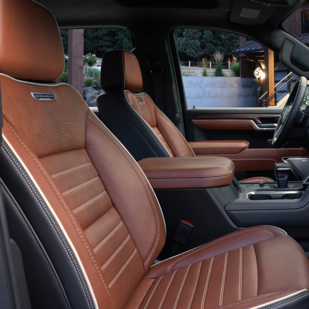 What truly sets the Denali Ultimate apart is its attention to detail. From laser-etched accents to unique seat badging, every surface feels intentional. This isn’t just an upgraded trim—it’s a fully realized luxury concept applied to a full-size truck.