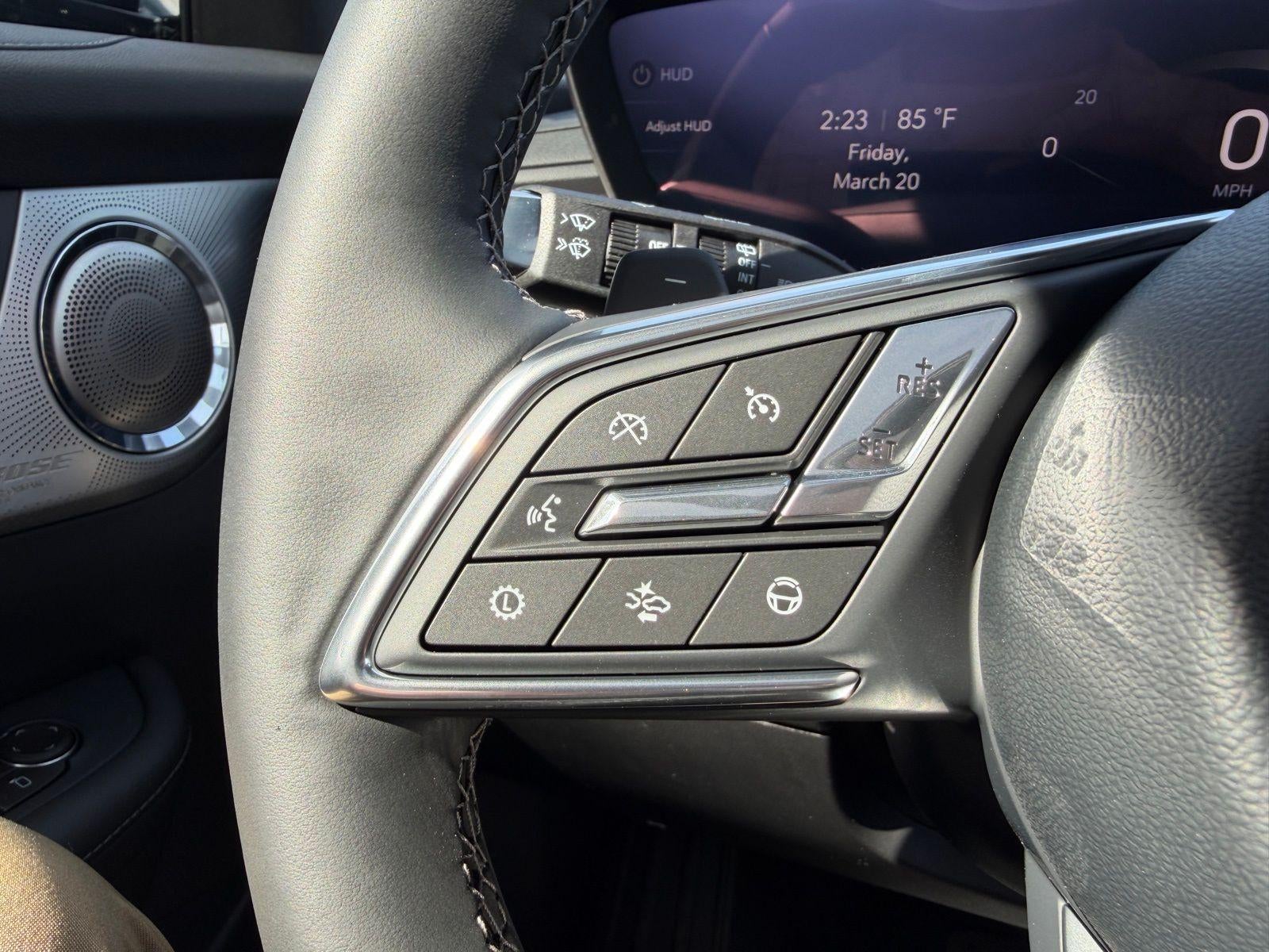 2.5L Turbo. All wheel drive. Apple CarPlay/Android Auto, Leather seats, 3rd row seats: split-bench, Adaptive suspension, Auto High-beam Headlights, Bose Performance 16-Speaker Audio System with Subwoofer, Driver Attention Assist, Enhanced Automatic Parking Assist, Front Bucket Seats, Front dual zone A/C, Garage door transmitter, Heads-Up Display, Heated front seats, Heated rear seats, Heated steering wheel, Memory seat, Navigation System, Power Liftgate, Rear air conditioning, Remote keyless entry, SiriusXM with 360L Trial Subscription, Super Cruise, Ventilated front seats, Ventilated rear seats, Adaptive cruise control, Forward collision alert, Traffic sign recognition, Intellibeam, Automatic emergency braking, Rear cross traffic braking, Blind zone steering assist, Reverse automatic braking, Safety alert seat, HD Surround Vision.