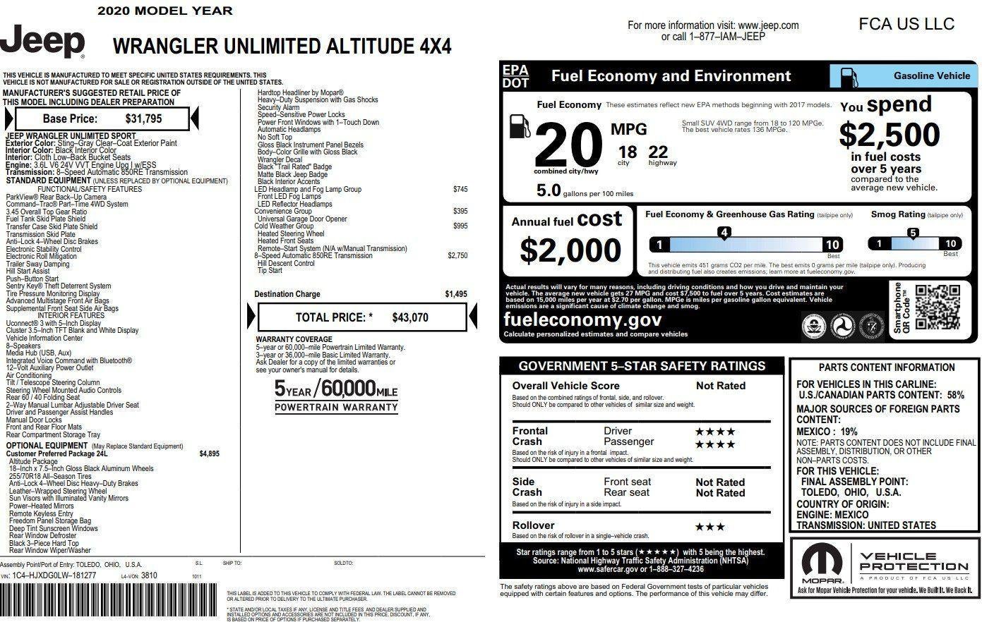 2020 Jeep Wrangler Unlimited Sport Altitude