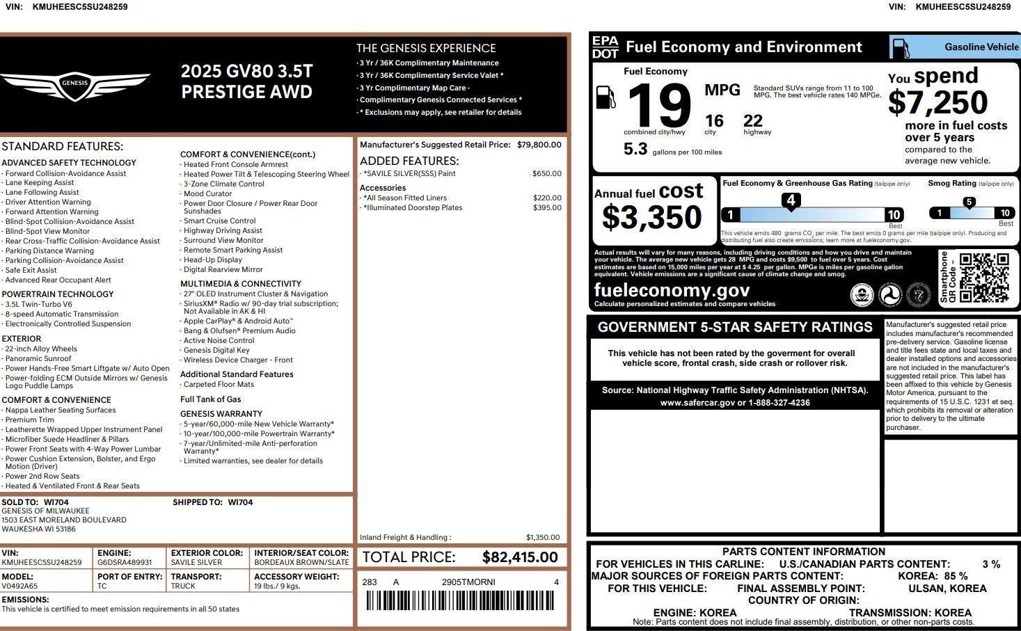 2025 Genesis GV80 3.5T Prestige
